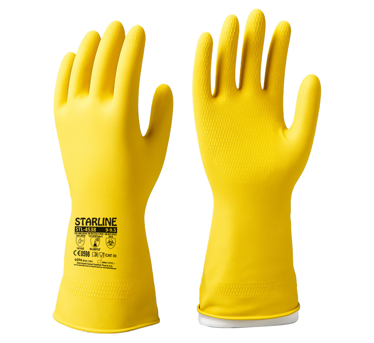 | Standartlar | EN 388:2016+A1:2018 (1010X) EN ISO 374-1:2016+A1:2018 (KLMPST) EN 374-5:2016 EN ISO 21420: 2020 |